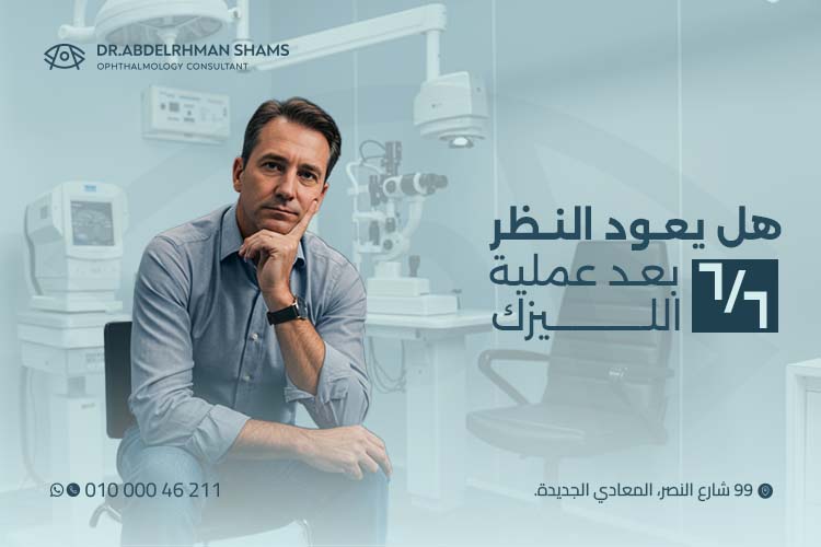 هل يعود النظر 6 6 بعد عملية الليزك، يجيبنا دكتور عبدالرحمن شمس عن سؤال متى يثبت النظر بعد عملية الليزك ويخبرنا أن النظر يبدأ في التحسن تدريجيًا بعد عملية الليزك